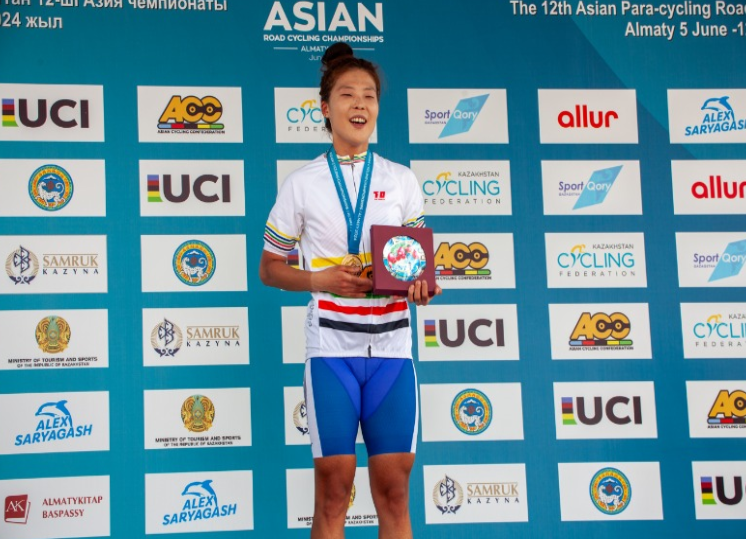 2024년 6월 11일 카자흐스탄 알마티에서 열린 대회 여자 개인도로 경기에서 송민지 선수는 참가 선수 84명 중 가장 빠른 2시간 56분 51초의 기록으로 112.6km 구간을 완주하며 우승했습니다.;