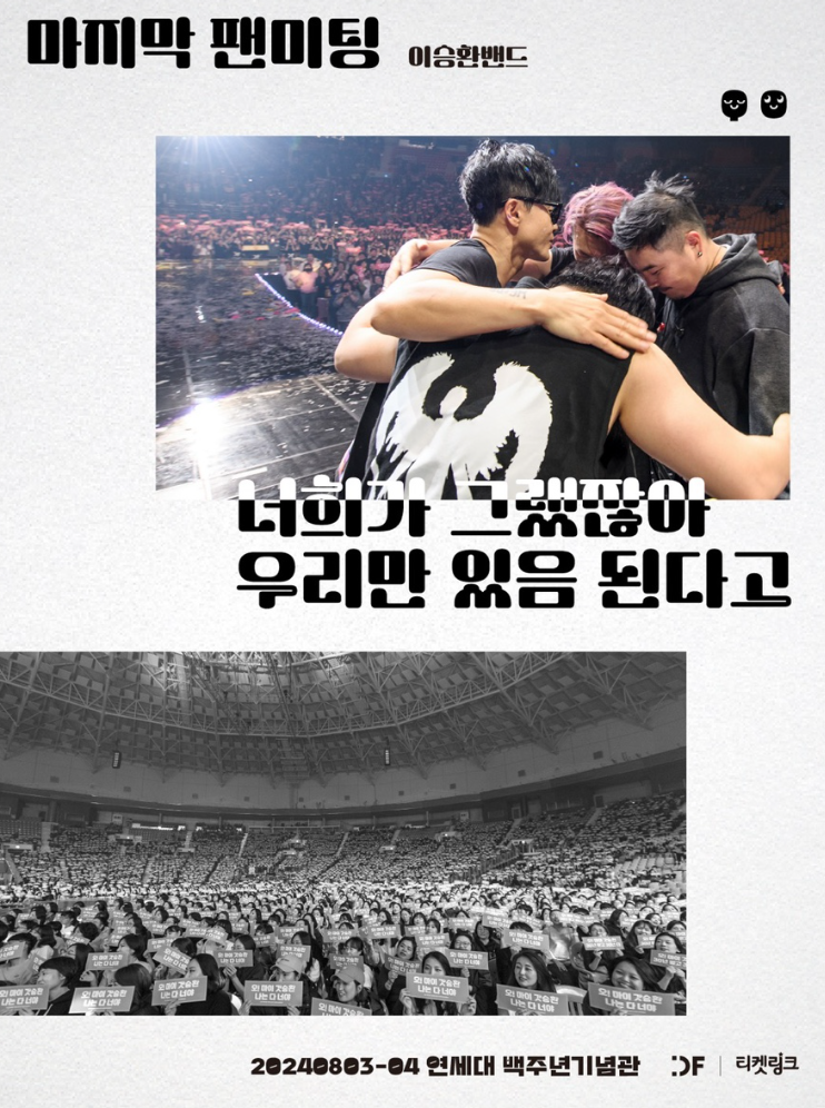 | 이승환 밴드 마지막 팬미팅 공연 서울 | 2024년 8월 4일 일요일 오후5시 | 연세대학교 백주년기념관 콘서트홀 |