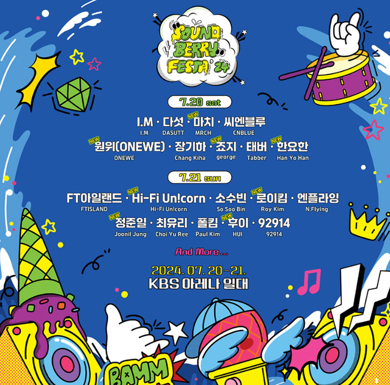 - Soundberry Festa' 24 공연일정은 2024년 7월 20일(토) - 21일(일)입니다.
